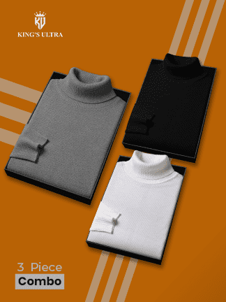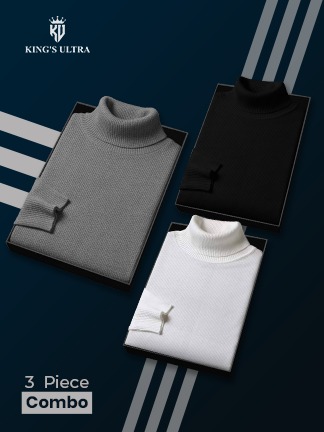 3 Pics Men’s Winter High Neck Sweatshirt (Black, White,Navy blue)