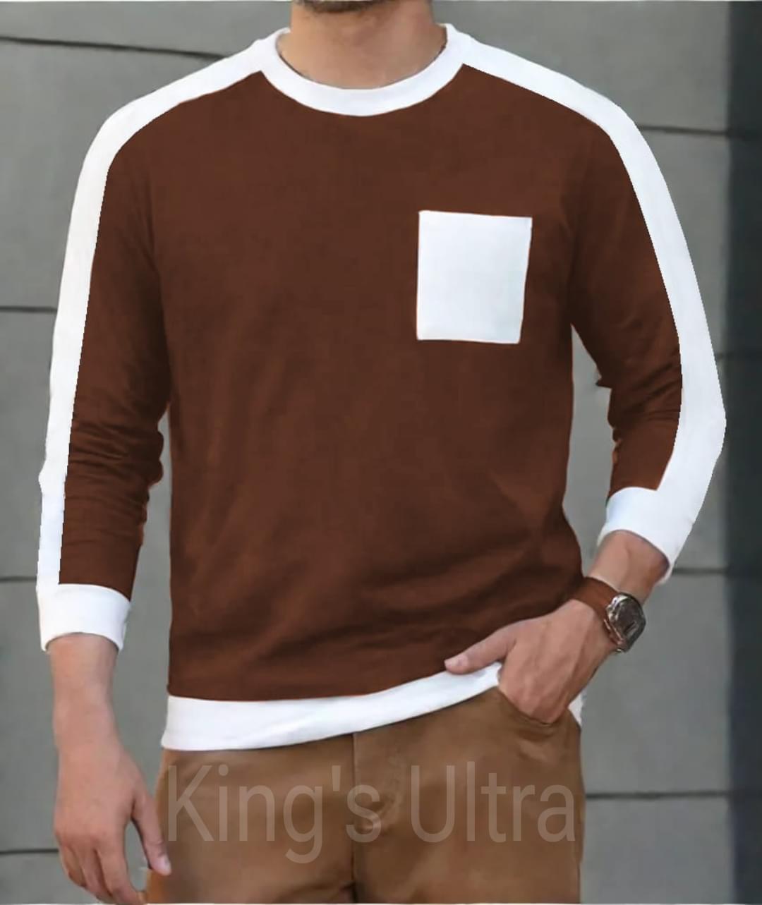 Contrast pocket full sleeve T-shirt (Brown)