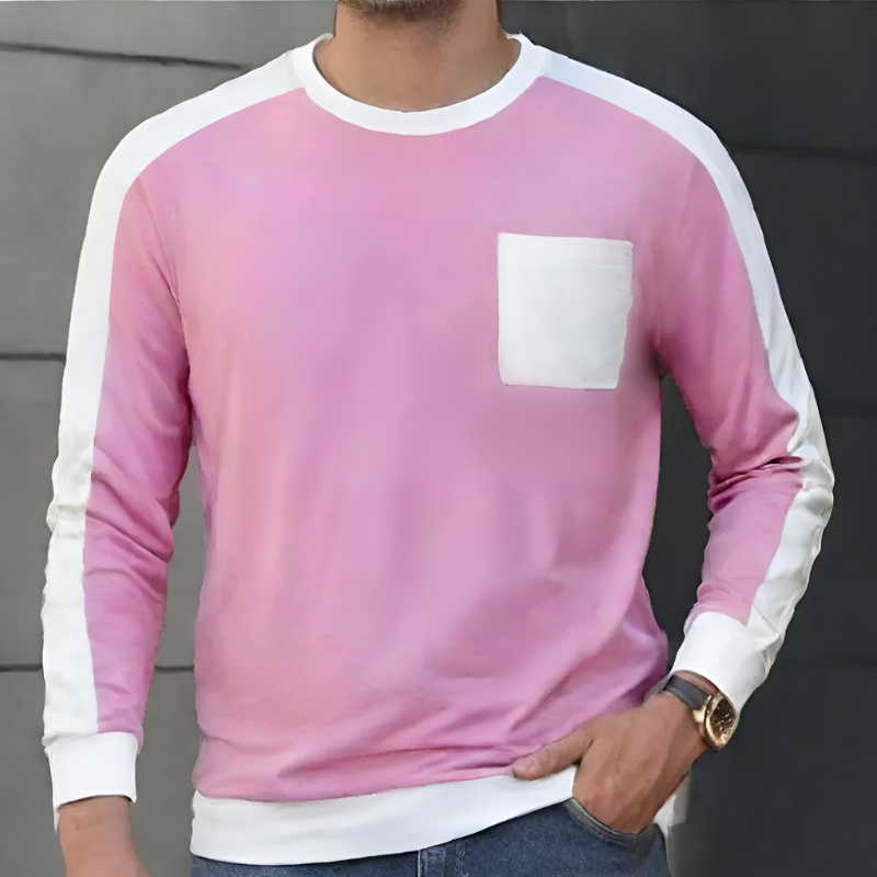 Home Contrast pocket full sleeve t-shirt Contrast pocket full sleeve T-shirt (Pink)