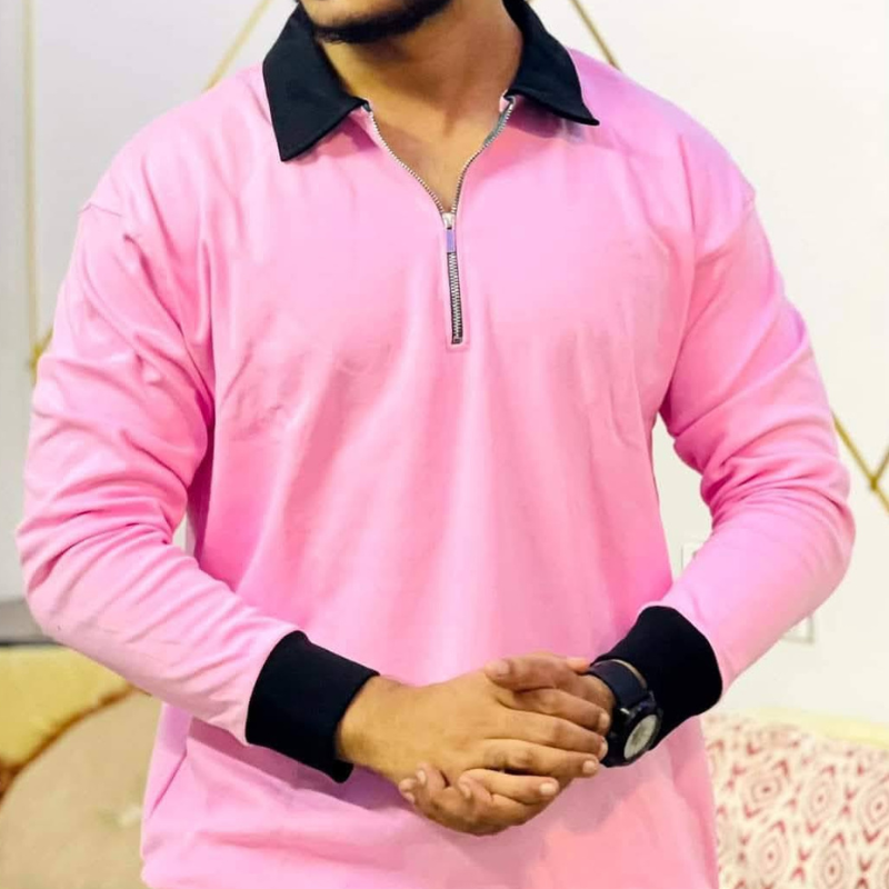 Zipperpolo Full Slevees T-shirt pink